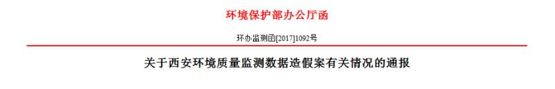 環(huán)保部:關于西安環(huán)境質量監(jiān)測數據造假案有關情況的通報