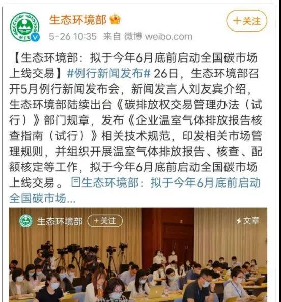 26日?據生態環境部官方微博消息,擬于今年6月底前啟動全國碳市場上線交易。