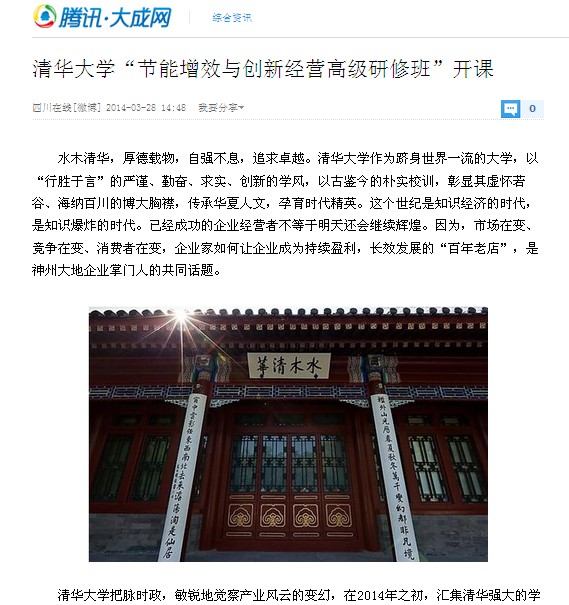 清華大學(xué)“節(jié)能增效與創(chuàng)新經(jīng)營(yíng)高級(jí)研修班”開(kāi)課