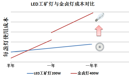 從短期看,金鹵燈的投入比LED工礦燈少。從長期看,LED工礦燈是一種更環保、節能的綠色照明產品,而且不到1年的時間內將收回全部投入。